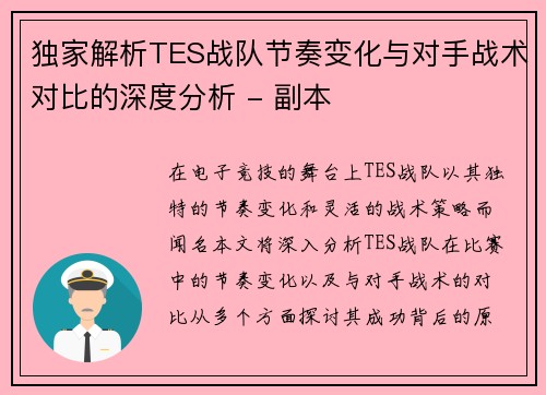 独家解析TES战队节奏变化与对手战术对比的深度分析 - 副本